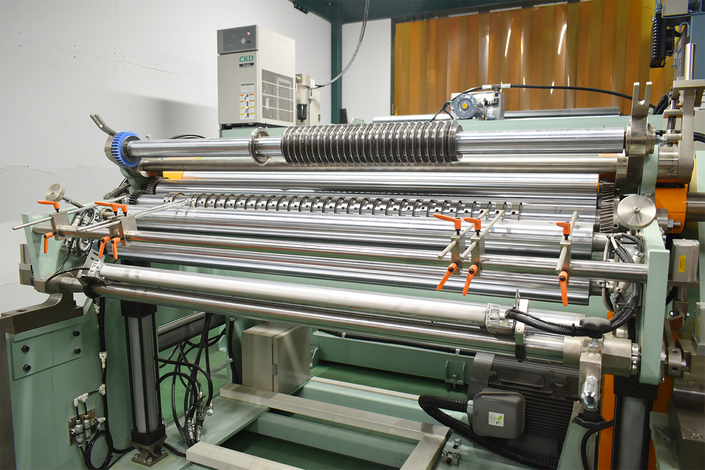 蓄積したデータと社員のノウハウが、芯のない紙管や燃えない紙など特殊なスリット加工を実現しています。